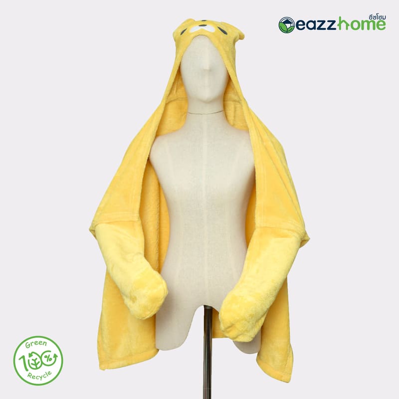 Stepping up your young one’s cosy game with this adorable Eazzie Gang hooded baby blanket with enclosed sleeves. This one comes with a lovely Keta the tiger hood and the vivid colour of yellow. You can use this as a stand-alone garment or as the second layer to wear over pyjamas.