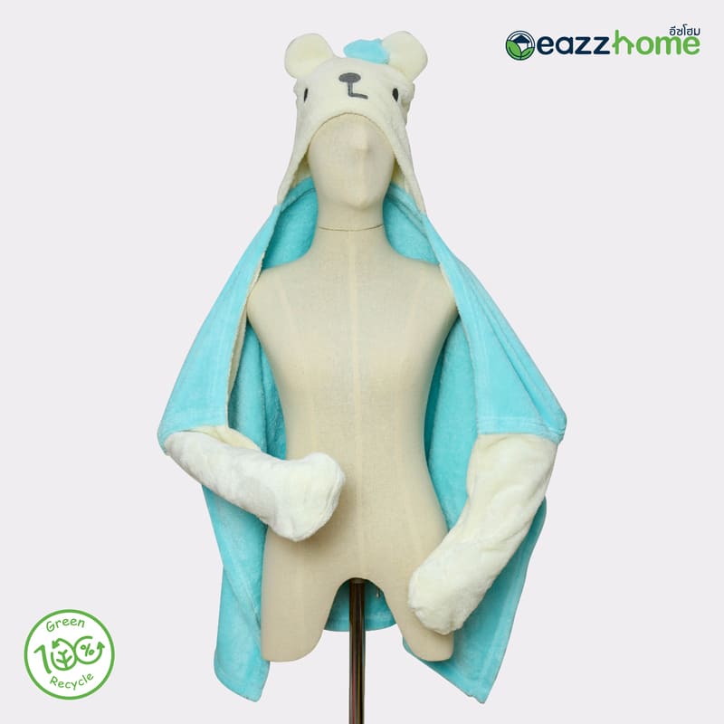 Stepping up your young one’s cosy game with this adorable Eazzie Gang hooded baby blanket with enclosed sleeves. This one comes with a lovely Pol the bear hood and the playful colours of cream and blue. You can use this as a stand-alone garment or as the second layer to wear over pyjamas.