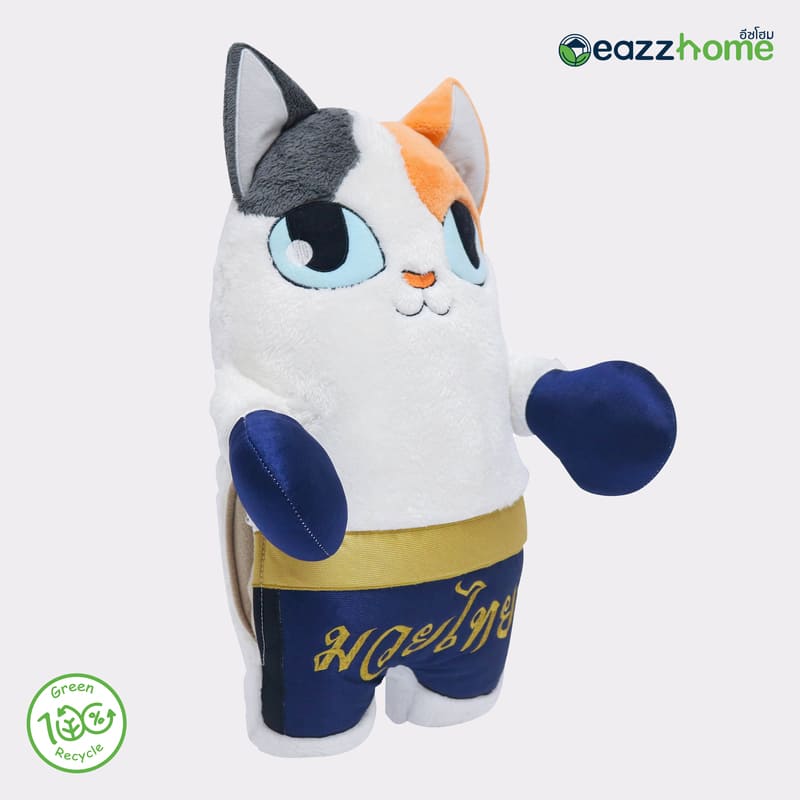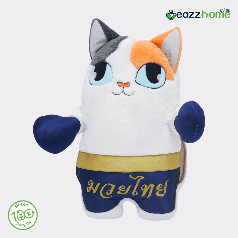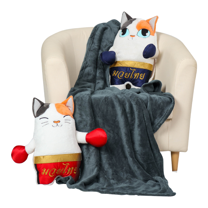 Aesthetics of Thais Partially Recycled Polyester Muay Thai Cat Hand Warmer Doll Pillow Blanket, Navy