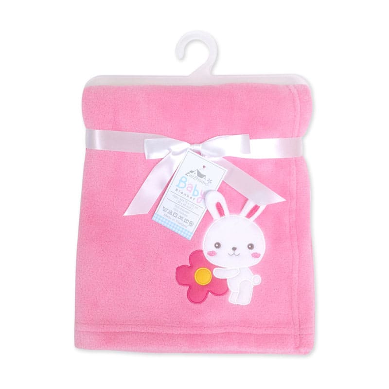 Recycled Polyester Eco Baby Blanket with Rabbit Applique, Pink