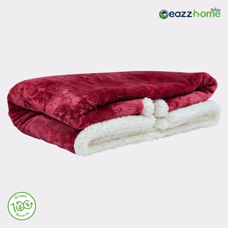 Recycled Polyester Eco Plush Blanket Reversible to Sherpa, Wine Red