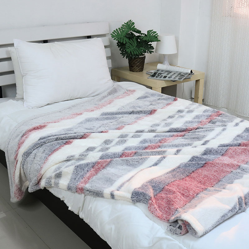 Stripe Pattern Printed on Recycled Polyester Eco Frosted Fluffy Flannel Throw, Red
